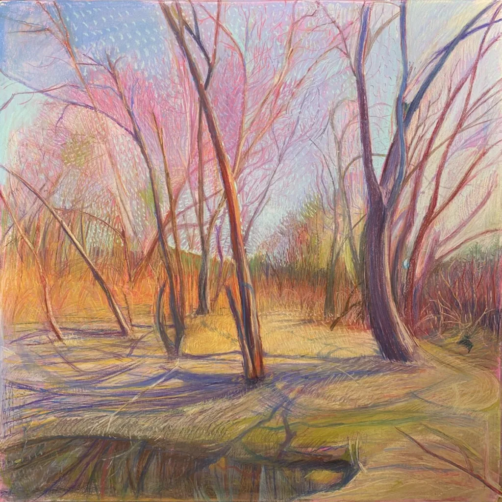 Alex’s work is a nuanced exploration of the interplay between texture, color, shape, and mark-making, seeking to capture the luminous movements of creative forces that exist beyond the literal field of vision. His paintings serve as vibrant representations of the spirit inherent in the landscape, transforming scenes into energetic expressions that extend beyond the visual into a realm of artistic vitality.