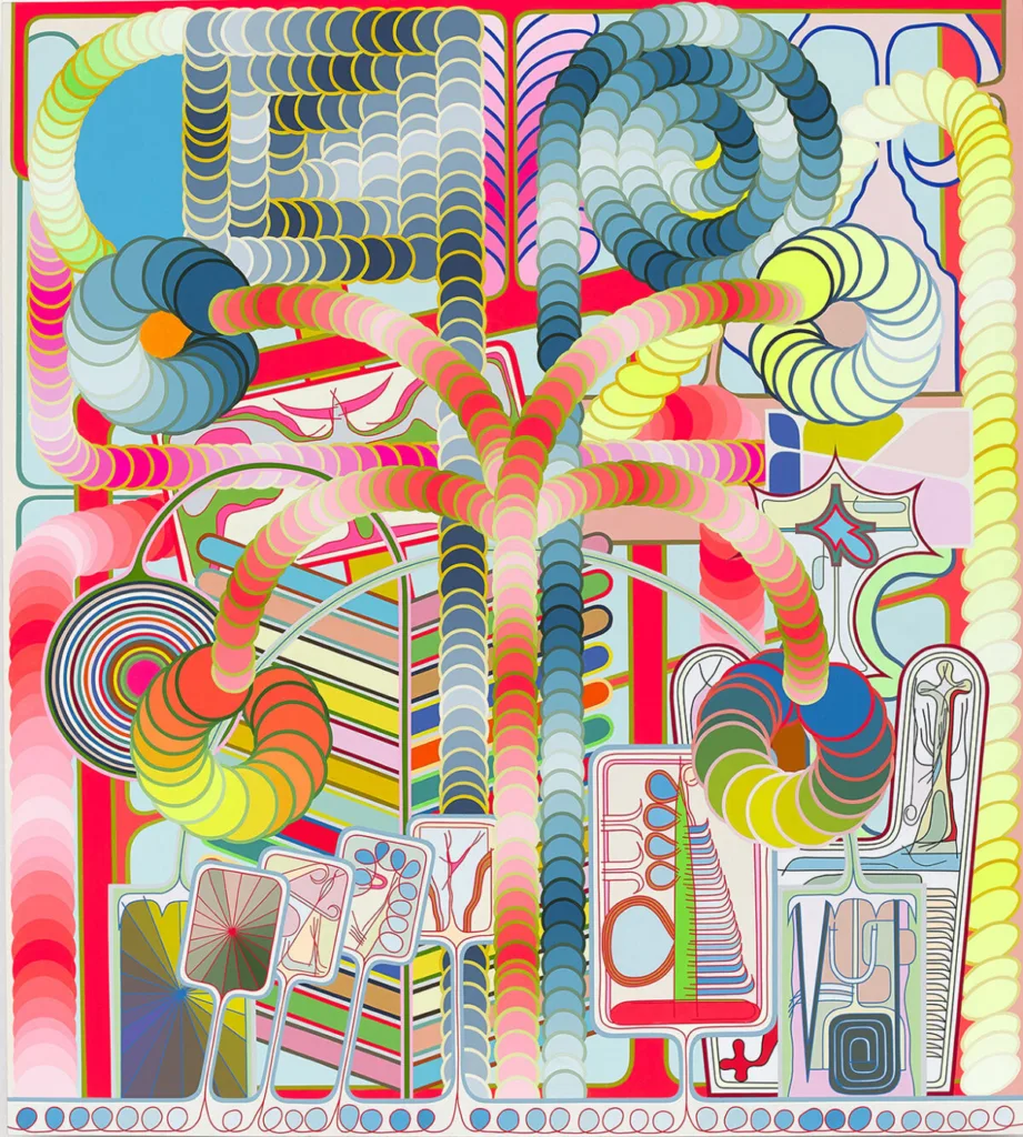 Eric Shaw is a self-taught painter whose bold geometric abstraction draws from the rich visual environment of New York City. Elements of graphic design found in street signs, logos, and advertisements are stretched and skewed as Shaw sketches out what he sees using a drawing app on his phone. The sketches are further copied, pasted and shifted using image editing tools, and then translated onto canvas by hand with acrylic paint. The final work, often incorporating several of the digital sketches in one composition, is a complex conversation between lines, shapes, and color shaped by the functionalities of the imaging tools he implements. His acrylic on canvas paintings are both highly improvisational and painstakingly precise.