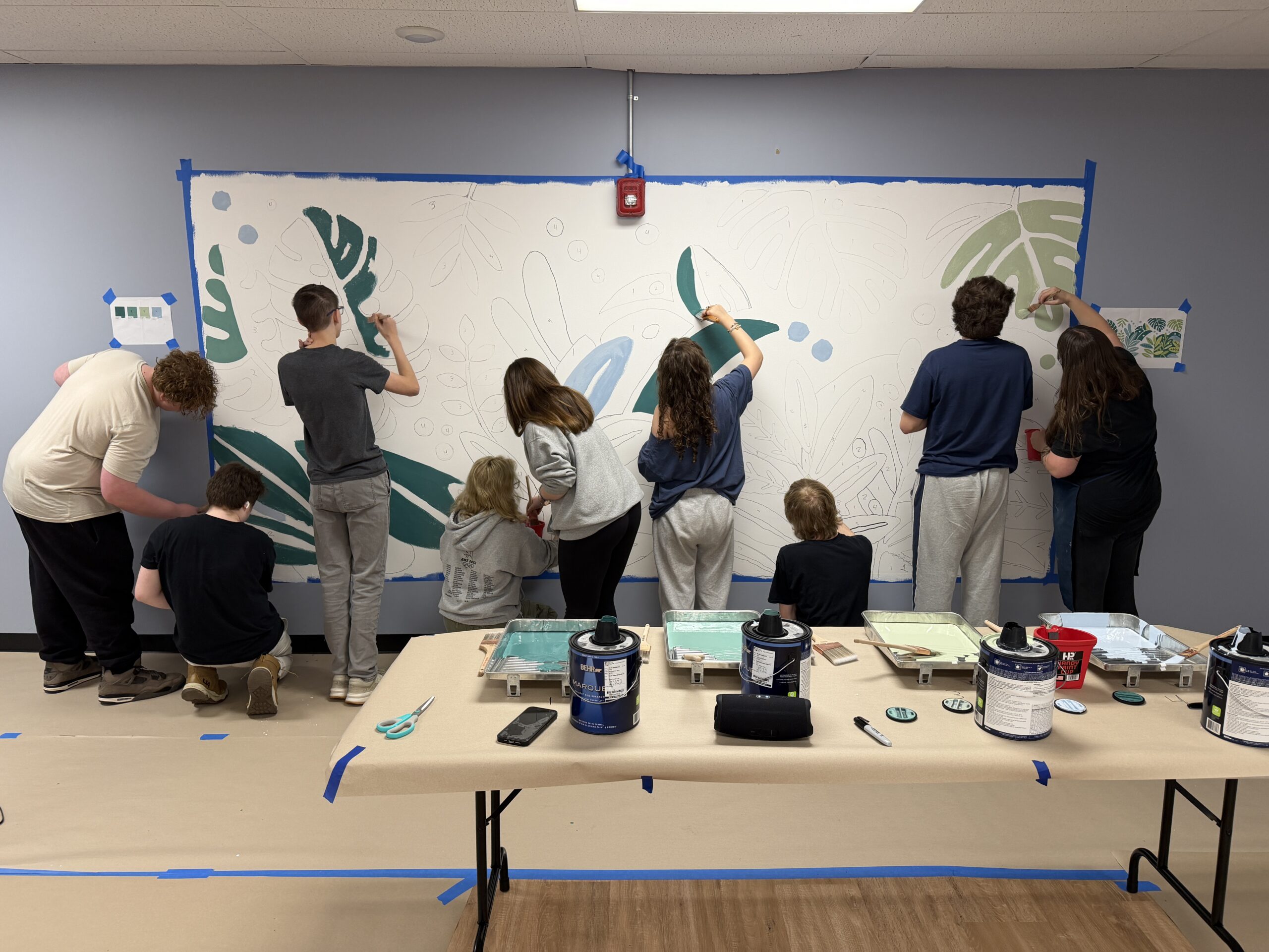 On Thursday, April 16, 2026, several students from Spaulding High School worked with members of the Rochester Senior Activity Center to complete a mural at the James W. Foley Memorial Community Center.