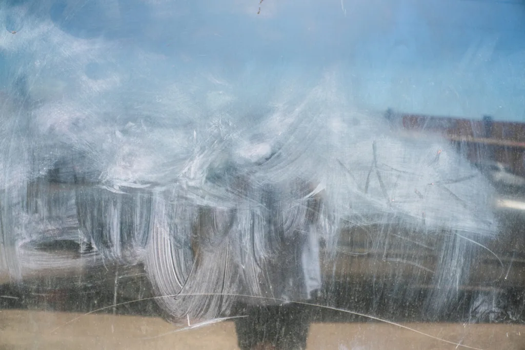 For several years, it was Joseph Podlesnik’s practice to photograph the suburban landscape in Phoenix. The images were often complex. Shadows and reflections were juxtaposed, creating unusually complex and carefully balanced abstractions. It turns out that those mainly uninhabited streets and shop windows were hiding something: the photographer’s own face and body.