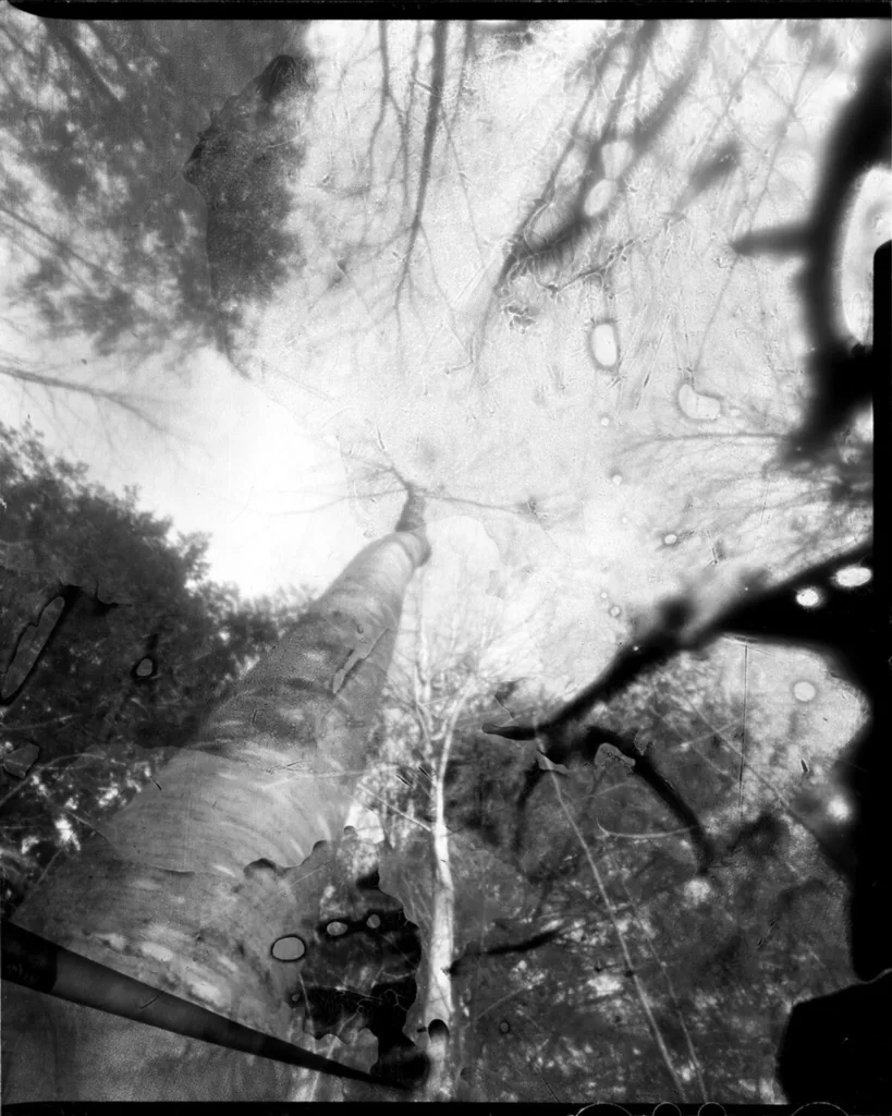 “Each image in The Known Unknown is a consideration of self. In this exploration, only fresh air and footsteps are exchanged with the land, with no real direction or goal other than keeping one’s head up. A thin veil obscures the landscape and encroaches onto the sky during each long exposure of the 4×5 film, reminding us that we are never truly still even when resting. The simple act of wandering alone in the woods creates a practice of slowing down and claiming a space: I am here, I belong, I matter. Capturing these moments in time allows us to identify how we are connected to the environment, to others in our lives, and most importantly to ourselves. The repetitive and disorienting nature of the work allows the viewer to consider the cycles in our daily lives. Reflecting on the internal conversation, and how this translates into the actions we take to care for ourselves, is an attempt to map the overwhelming unknown.”