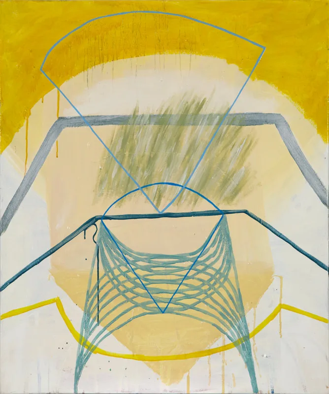 Ky Anderson is a New York-based artist known for her geometric, abstract paintings that reference everyday subjects. She sees her paintings as descriptive of the world around us and often conveys a sense of distance through her use of flat forms, limited palettes, and abstract lines that allude to the horizon. Anderson works on a group of paintings incrementally, which is why suites of her work often have similar colors. She also returns to and reworks paintings over the course of years. Anderson’s creative process does not involve planning a narrative before beginning a new piece but instead allows the narrative to appear as the work is completed. Her unique approach to painting results in works that challenge the viewer to see the familiar in a new way.