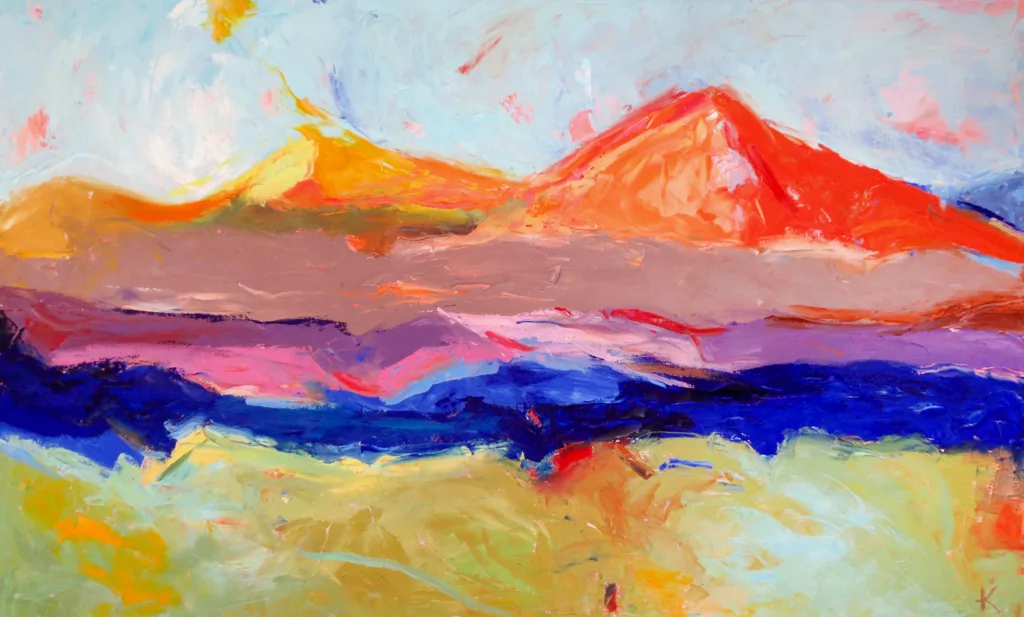 Having lived near Mount Washington in northern New Hampshire for many years, Rebecca now resides near Portsmouth, NH. The mountains inspired the sentimentality and lyrical style in her landscapes, along with Fauvism, which has greatly influenced her work. These elements have resulted in large, modern, and unique fine art paintings. Rebecca hopes to share the beauty of natural subjects, human connections, and vibrant colors with viewers through her work.