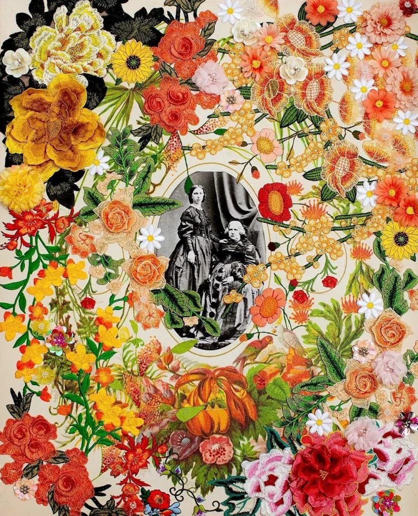 After experiencing a near-death incident in 2009, much of her artwork engages motifs of mortality, mourning culture, and the psychological space of “limbo” thematically. In order to address these intangible subjects, she uses symbolic means, humor, cultural signposts, and varied media (primarily papier-mâché, beading, photography, needlepoint, and childhood craft) to become more accessible to the audience, and to perhaps open up dialog about mortality and spiritual inquiry—subjects typically deemed “taboo” in contemporary North American society.