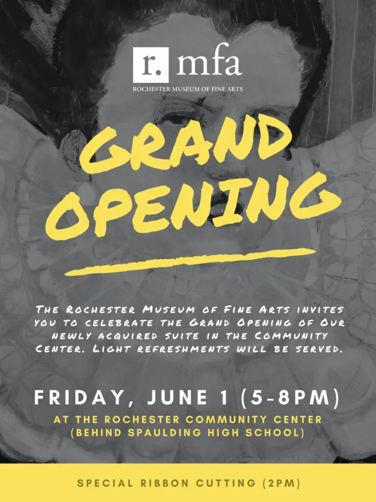 The Rochester Museum of Fine Arts will host a Grand Opening celebration for its newly acquired and renovated suite in the Rochester Community Center. The museum already maintained a large collection of art adorning the walls of the long first-floor corridor, since 2014. The new suite will complement the collection display and add additional free programming to the community.