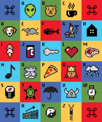 Susan Kare is a pioneering and influential computer graphic designer located in San Francisco, California. Since 1983, Kare has designed thousands of icons for the world’s leading companies. Her minimalist grid of pixels, constructed with mosaic-like precision, communicates the function of the icons immediately and memorably, with wit and style.